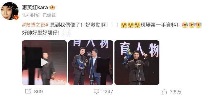 影视前辈惠英红更是前排追星,激动万分。