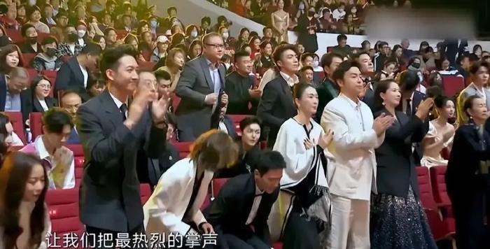 当74岁的张艺谋上台领奖时,台下艺人全体起立表示尊重,这一幕令人动容。